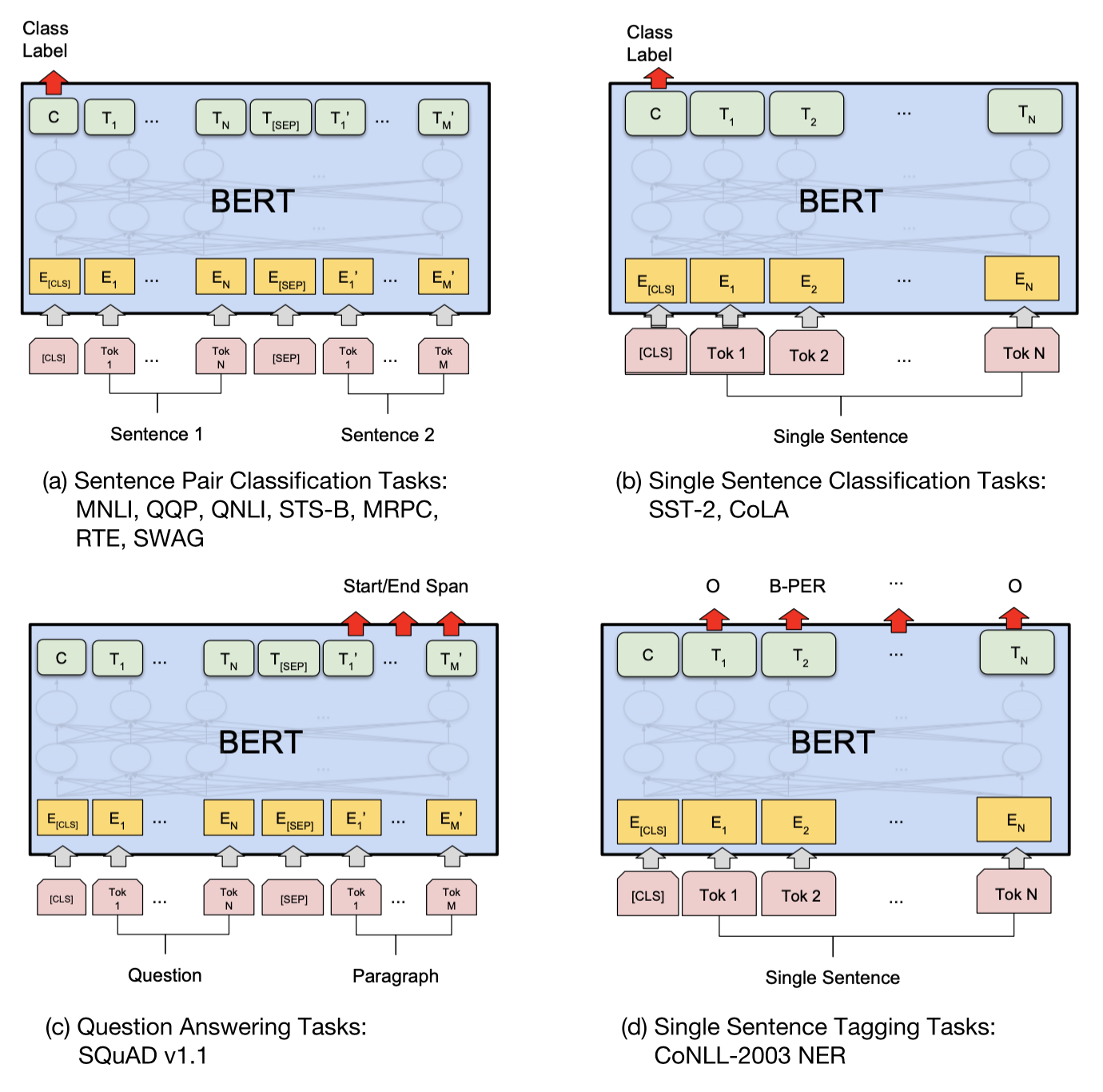 BERTは、Wikipediaと7,000冊の書籍を合わせた大規模なコーパスを使って事前学習されたモデルを、下流タスクのデータセットでファインチューングすることで、様々なタスクの性能を大幅に改善できることが示されました。