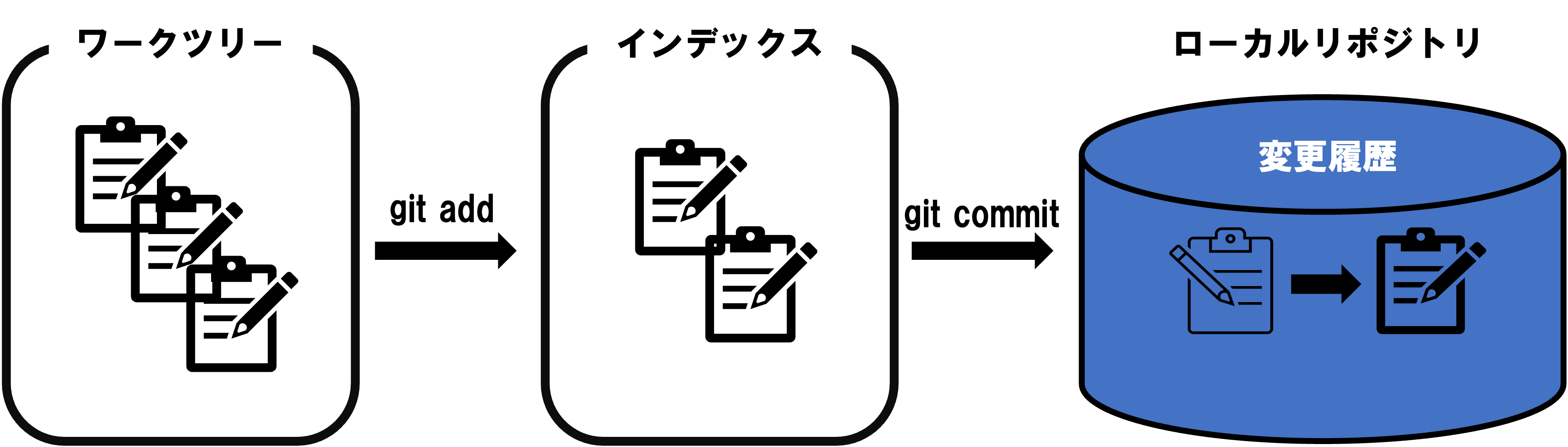 Gitでは、コミットを実行した時にワークツリーから直接リポジトリ内に状態を記録するのでなく、その間に設けられているインデックスの設定された状態を記録するようになっています。
