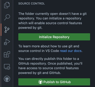 サイドバーの「ソース管理」(Source Control)を表示して,「リポジトリの初期化」(Initialize Rspository)をクリックします。