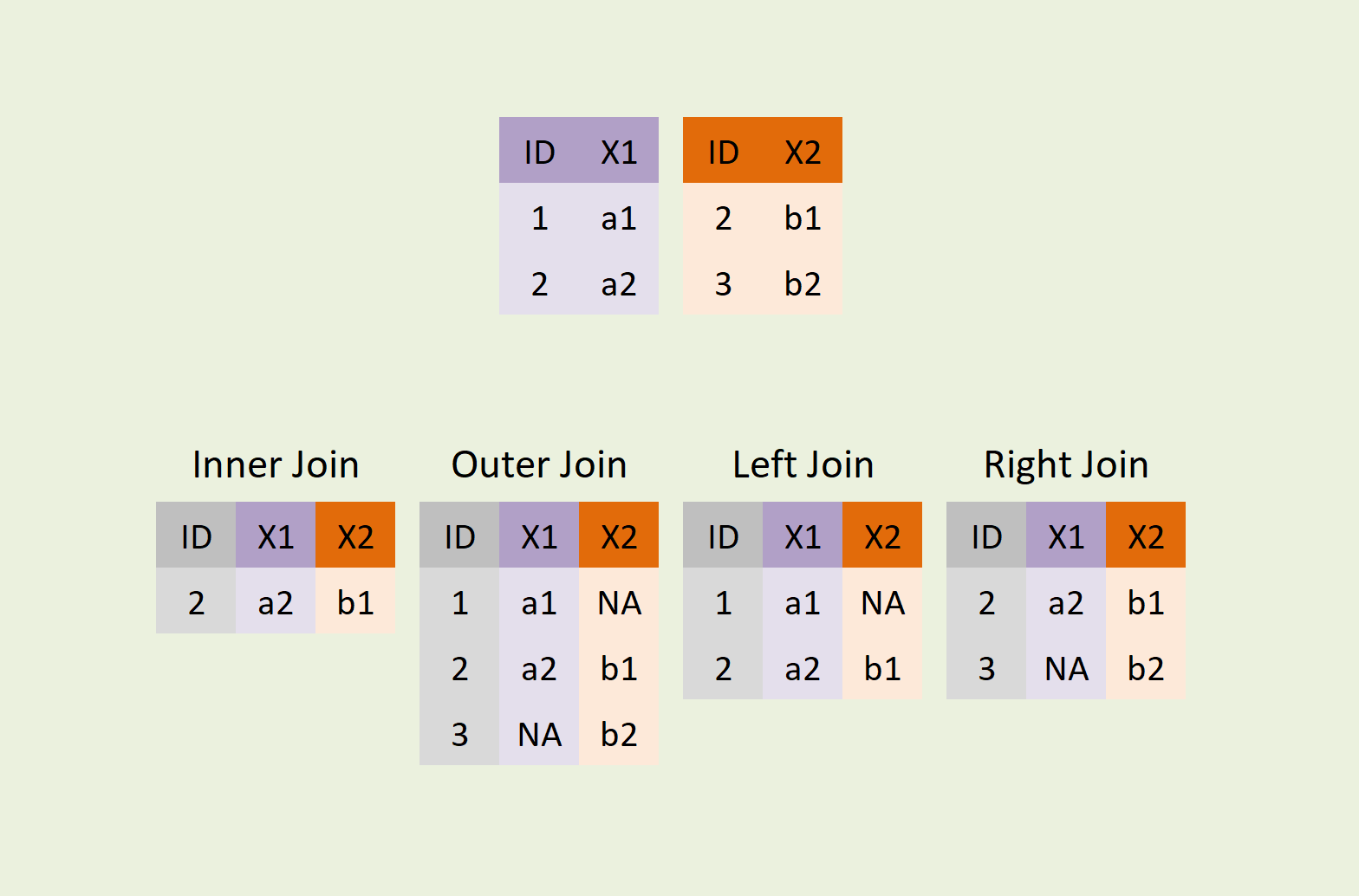 基本的には、結合するデータフレームの中で一つ以上共通の列を探し、それをキーとして使用します。